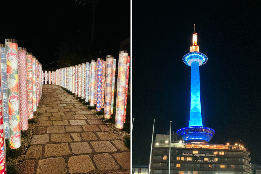 その代わり、京友禅をライトアップした「キモノフォレスト」を見ることができました!