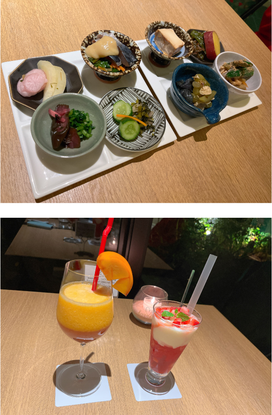 おばんざいや京漬物が絶品で、期間限定の柿のカクテルとの相性も◎