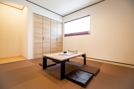 2色使いのタタミでナチュラルシックにまとめた和室はホッと一息つける安らぎの空間です。客間として、お子様の遊ぶスペースとして、お昼寝スペースとして様々な使い方ができます。
