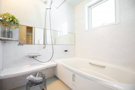 白で統一のユニットバスは明るく開放感のあるスペースになっております。