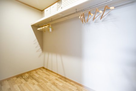 3.6帖の広々ウォークインクローゼットは洋服をかけたり収納BOXを置いたりと色んな用途にお使い頂けます。