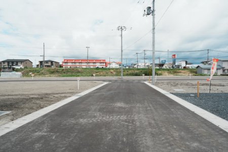 前面道路はアスファルト舗装済みの6mの広さです。
