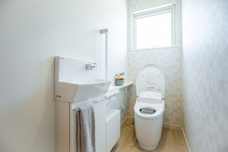 手洗い器には収納も付属しているのでトイレットペーパーや掃除道具などをすっきり収納することができます。