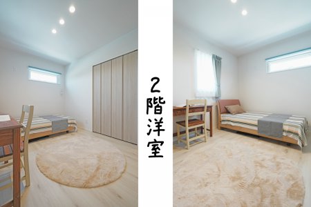 2階洋室は6帖の広さです。高い位置に窓を設けているので採光は確保しつつ外から室内が見える心配が少ないです。