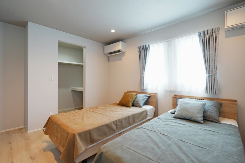 7.2帖の主寝室は2面に窓を設けているので明るい空間です。ウォークインクローゼット付きで収納力も◎