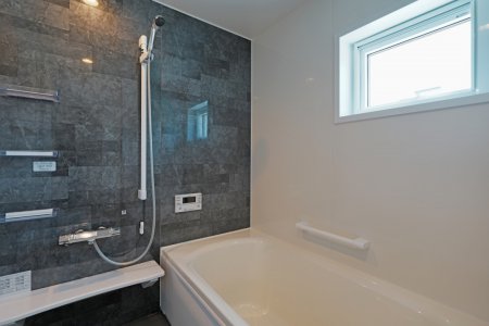 浴室は1坪の広さで足を伸ばしてゆったりと入浴できます。窓付きなので明るく湿気のこもりにくい浴室です。