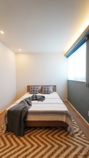 主寝室は間接照明が映えるおしゃれなお部屋です。ウォークインクローゼット付きでl収納力も◎