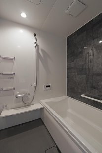 浴室は1坪タイプを採用!フラットタイプの浴槽で足を伸ばしてゆったりと入浴することができます。