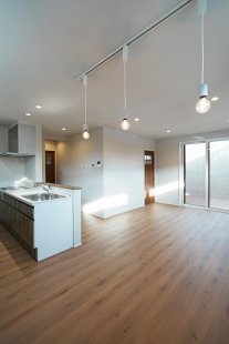 - オール電化、エコキュート370L、システムキッチン(IH クッキングヒーター、オールインワン浄水栓)、食器棚、システムバス、洗面化粧台、シャワートイレ、全居室カーテン付き、TV モニター付きインターホン、寒冷地エアコン2 台、網戸、全居室照明付き、太陽光搭載、外構(ウッドデッキ)など