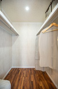 寝室にあるウォークインクローゼットはご主人と奥様の洋服を左右に分けてかけることができます!