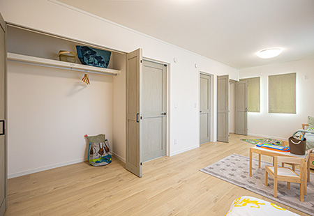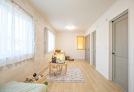 子供が小さいうちは仕切らず一部屋で共有し、お子様の成長に合わせて6帖2部屋に仕切ることが可能!