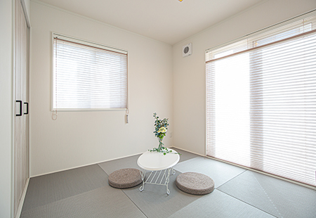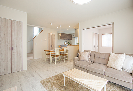 LDKに隣接する和室は扉で仕切ると個室として使用できます。扉を開けるとLDKと一体で使用できるのでより開放感のある空間になります。【こちらは施工例です】