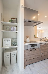 キッチン傍にパントリーがあり、食料品や飲料などを備蓄しおく事ができます!【こちらは施工例です】 -