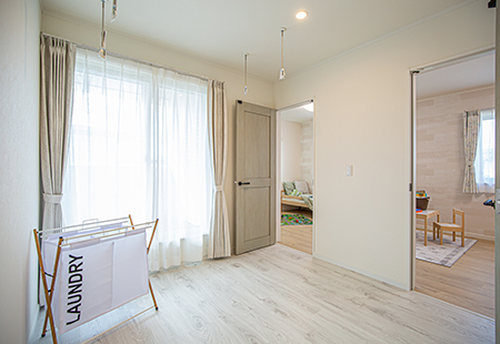 2Fのホールは洗濯物が部屋干しできるようにホスクリーンを設置!