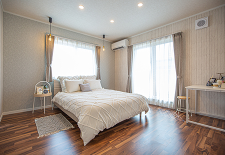 寝室はゆとりのある広さと落ち着いた雰囲気で安らげる空間となっています。