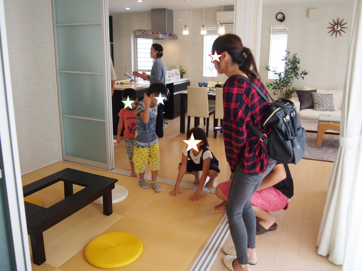 「ヤッホー!」っと吹き抜け越しの2Fから声をかけたり、兄弟みんなで浴槽に入って喜んでいる・・・キッズ達