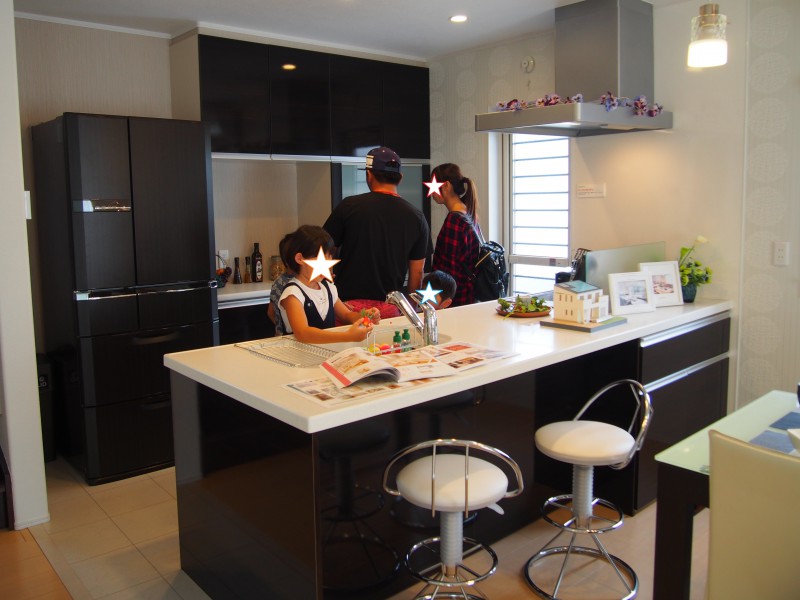 キッチンの収納力をチェックしている・・・ママさん