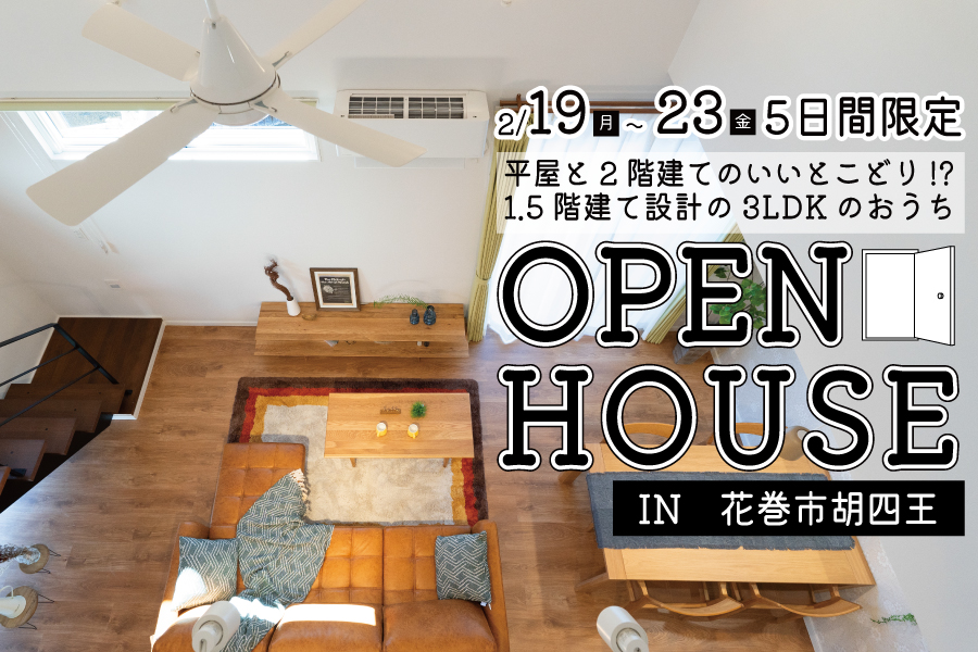 【新築住宅】花巻市胡四王*開放的な吹き抜けのある収納充実の3LDK新築完成見学会【花巻店】