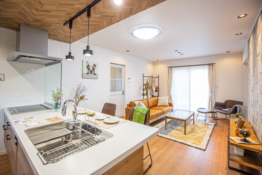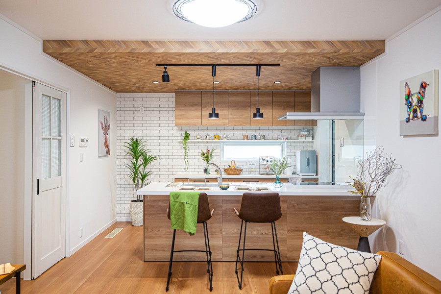 家事が楽しくなるようなキッチンと和室と続き間のリビングダイニングで、