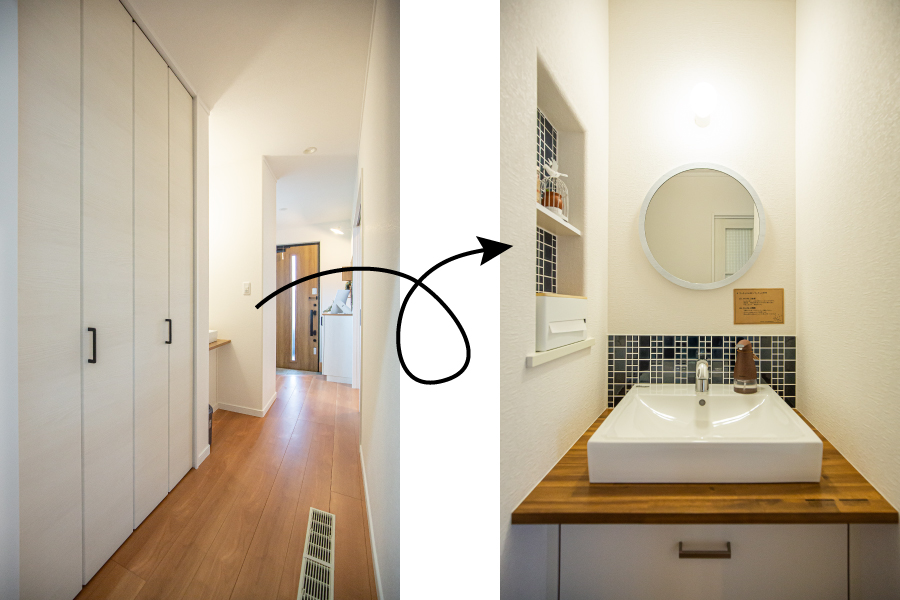 ↓玄関からすぐに手洗いができる動線です。