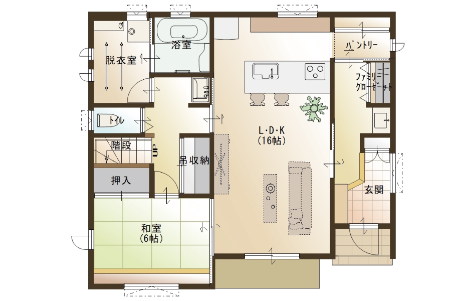 ・玄関→パントリー→キッチンと移動できるスムーズ家事動線