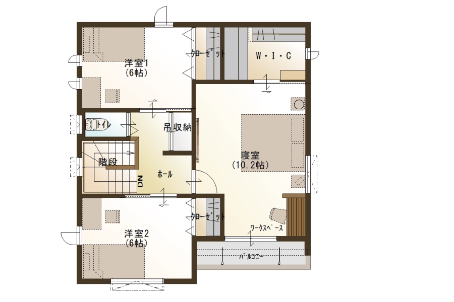 ・10.3帖の寝室+在宅ワークに便利なワークスペース
