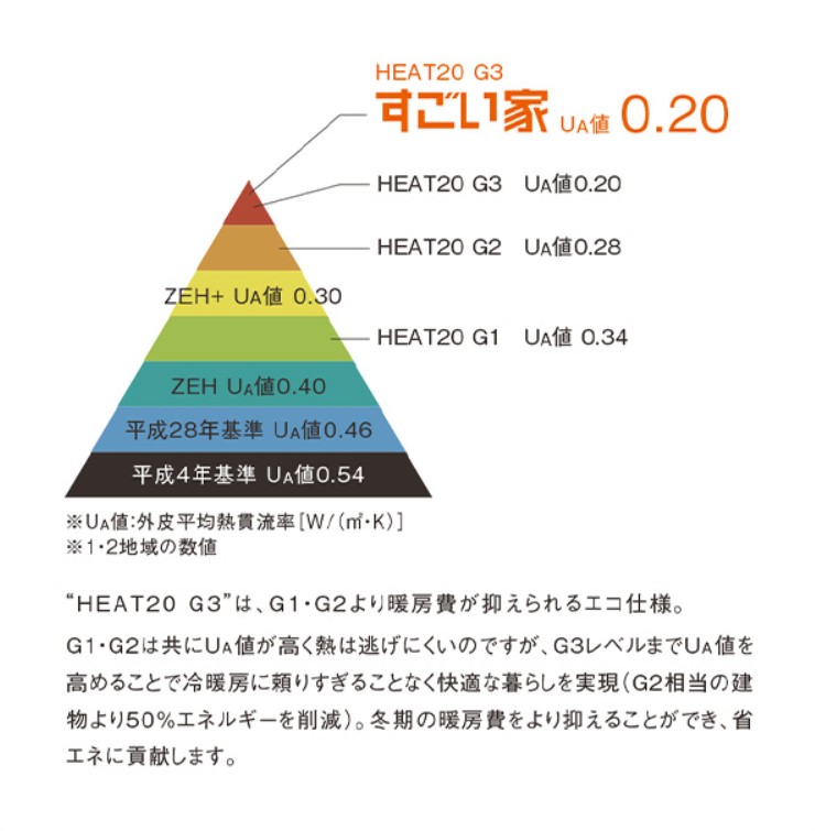 平成28年の省エネ基準やZEH適合基準の上をいく“HEAT20”の最高グレードとなる