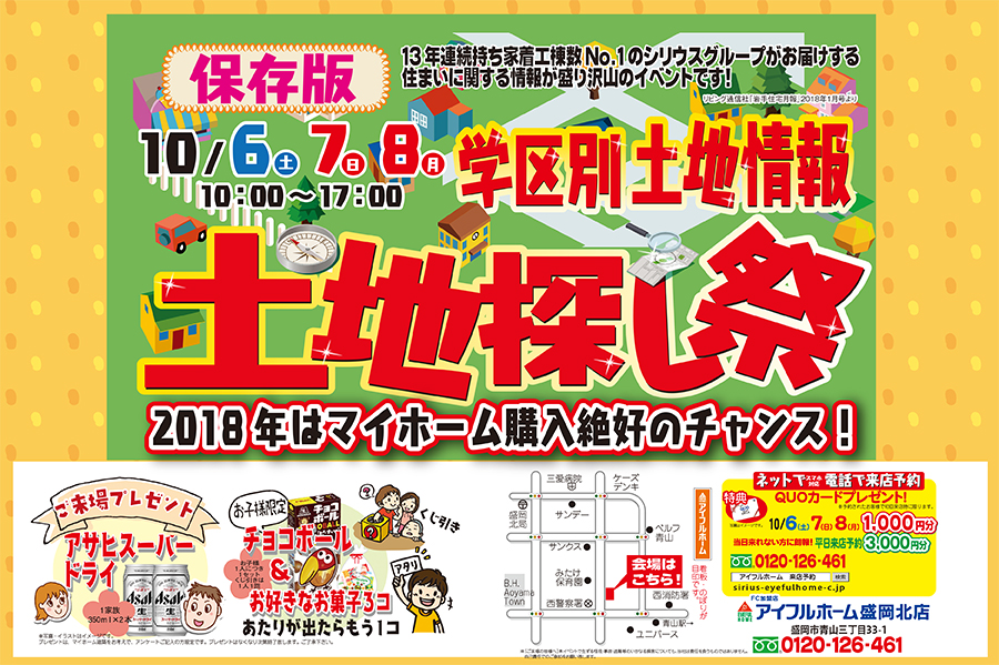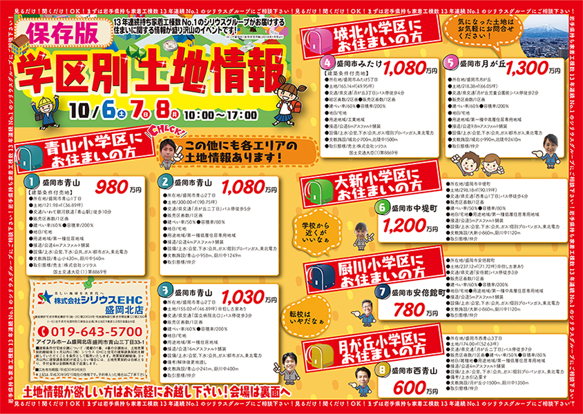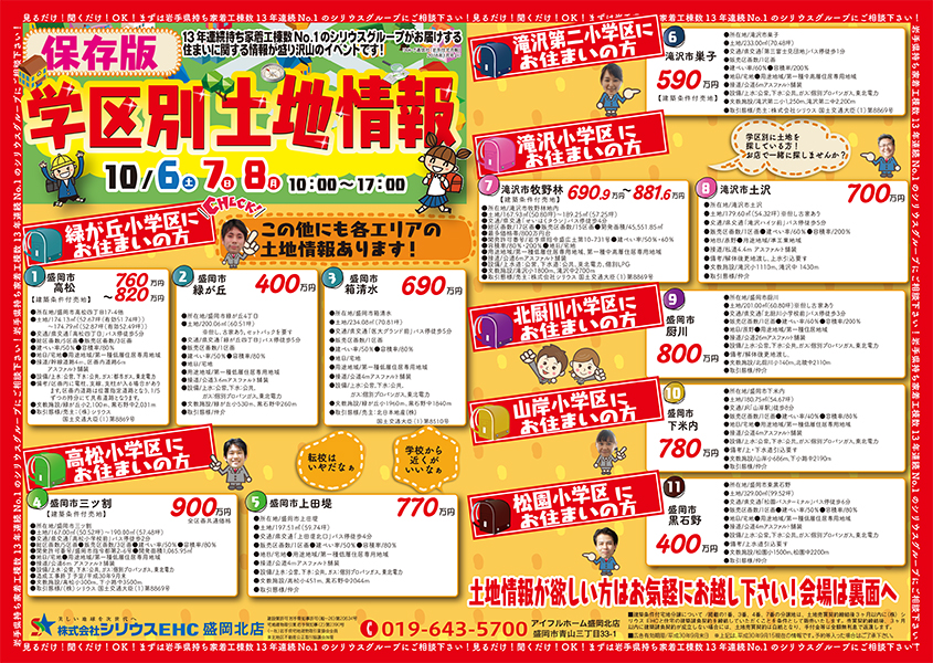 10月6日(土)7日(土)8日(月)10:00~17:00 「学区別土地情報 土地探し祭」を開催いたします!