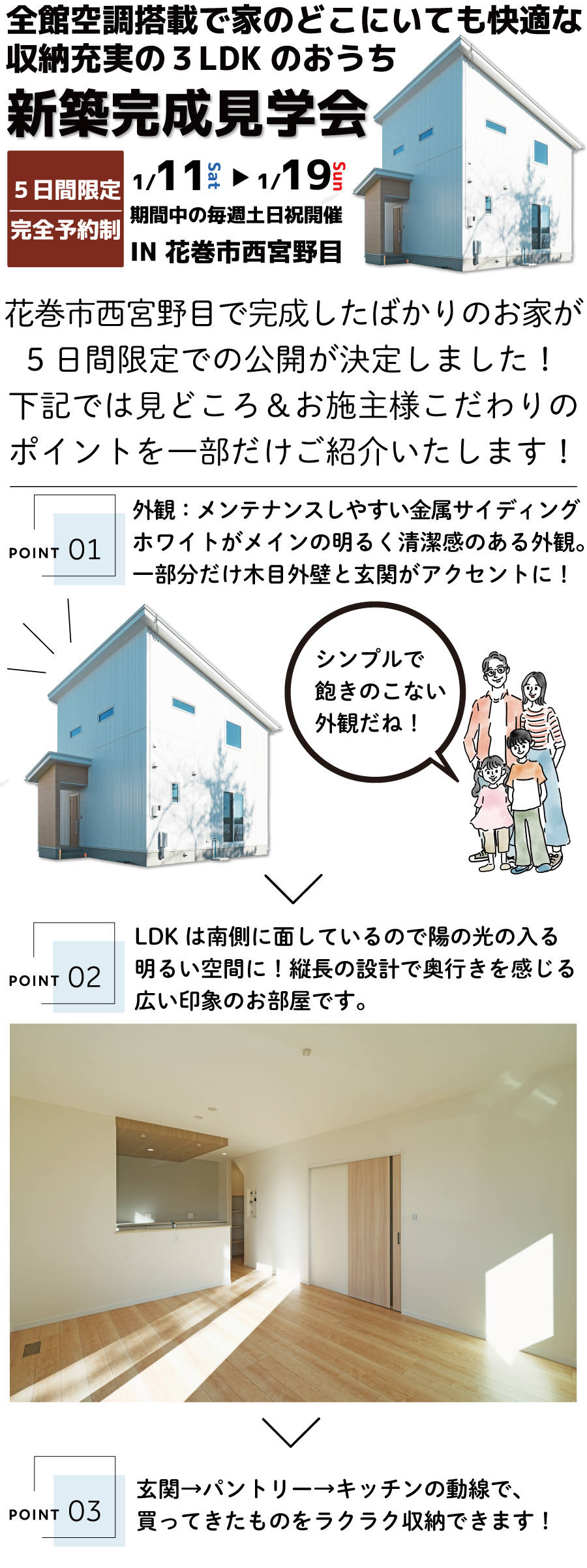 【新築住宅】花巻市西宮野目-全館空調でおうち全部が暖かい収納充実の3LDK-完成見学会【花巻店】