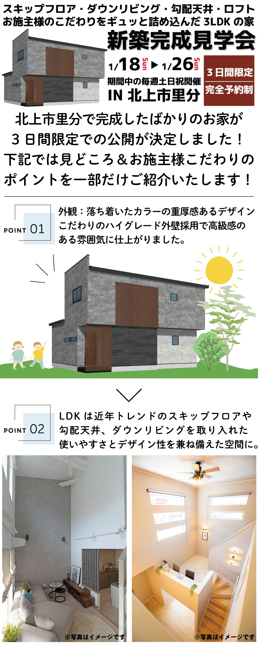 【新築住宅】スキップフロア・ダウンリビング・勾配天井・ロフトがあるお施主様のこだわりがつまった3LDK【花巻店】