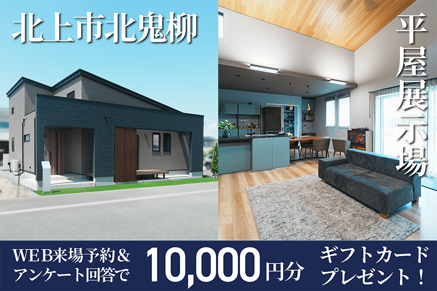 【新築住宅】人気の平屋!開放的な勾配天井と秘密基地のような小屋裏スペースのある3LDK*OPEN HOUSE【北上中央店】