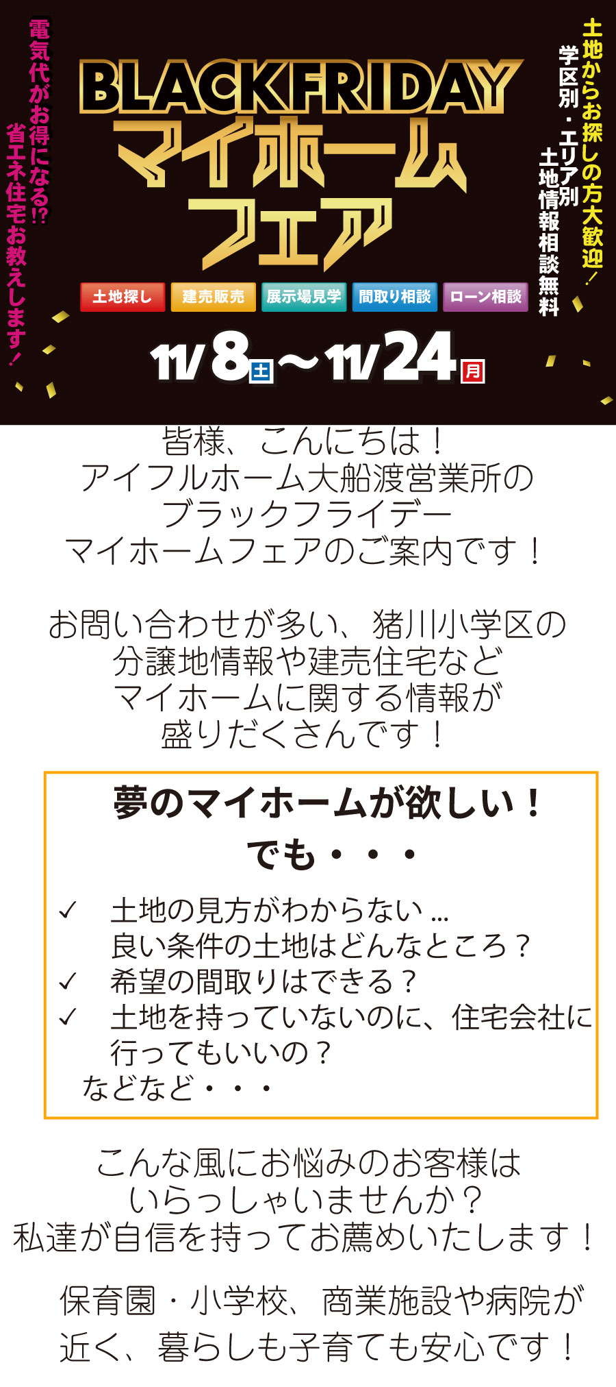 【新築住宅】土地も建売住宅も!ブラックフライデー マイホームフェア【大船渡営業所】