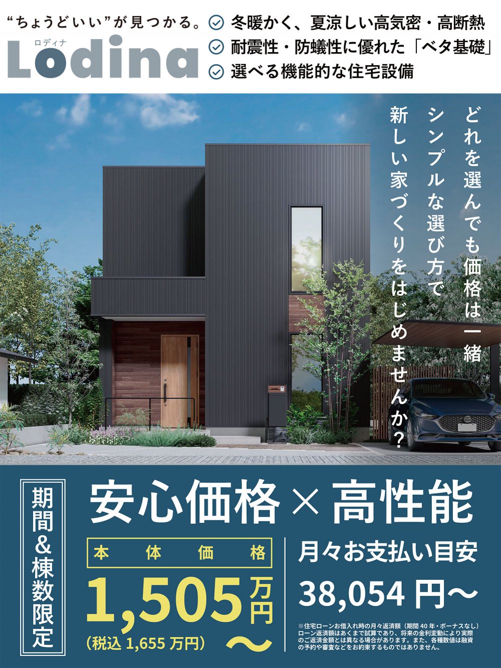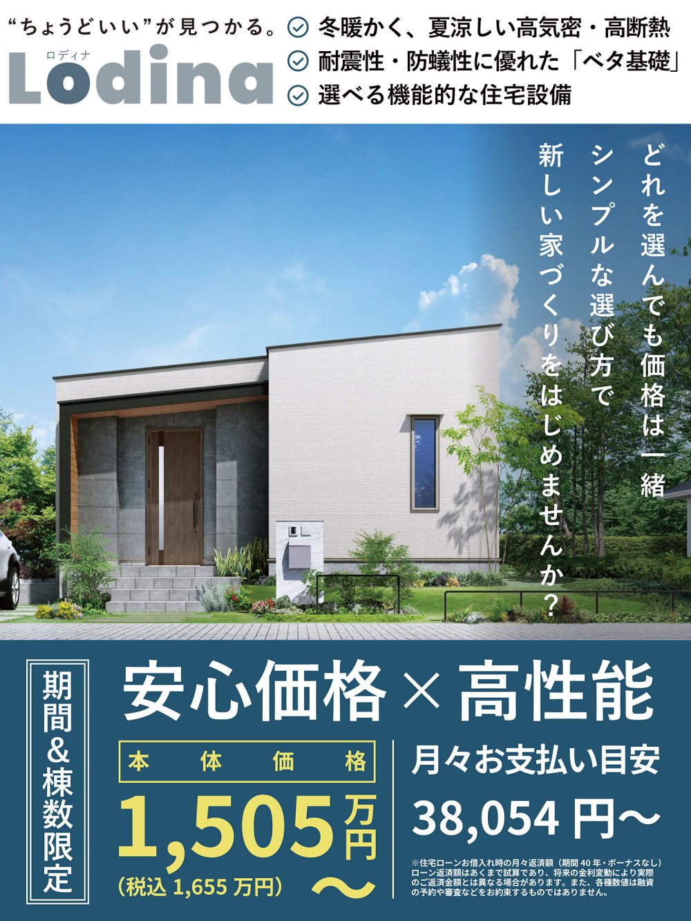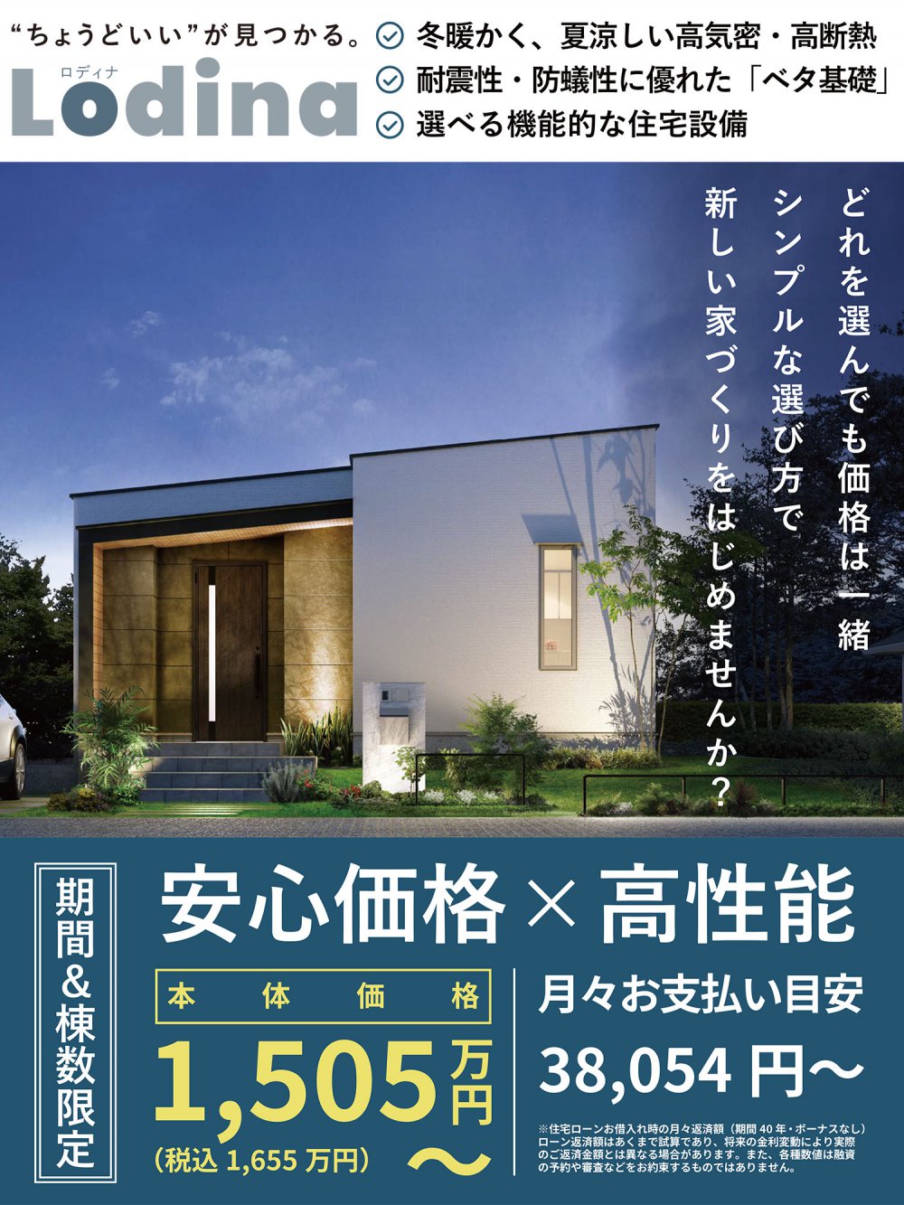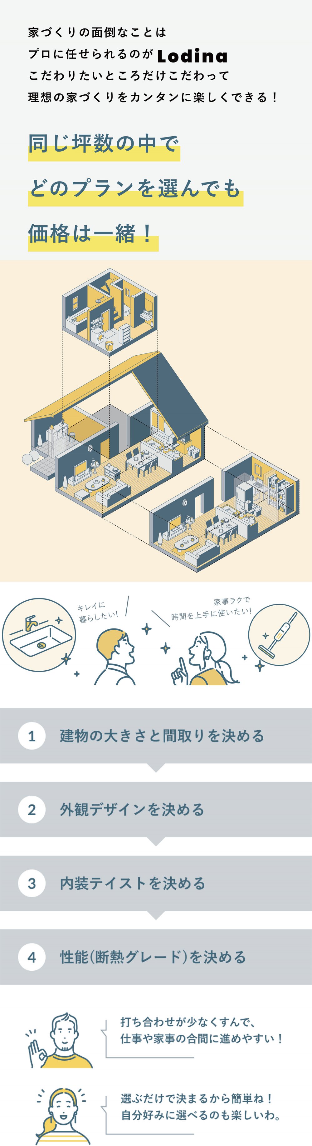 Lodinaは家の大きさによって建物本体価格を設定しています。