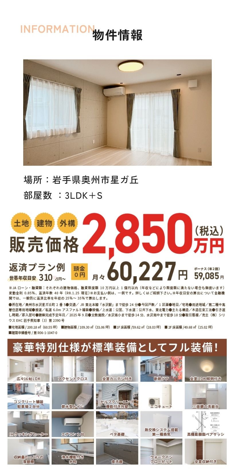 【水沢星ガ丘町】★建売販売会★限定1棟!北欧テイスト建売住宅