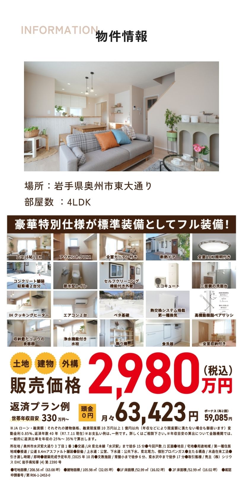 【水沢東大通り】★建売販売会★限定1棟!南欧テイスト建売住宅