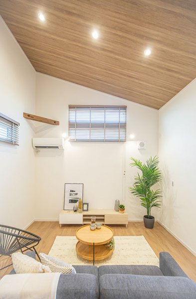 18帖の広々LDK+空間に開放感が生まれる勾配天井!