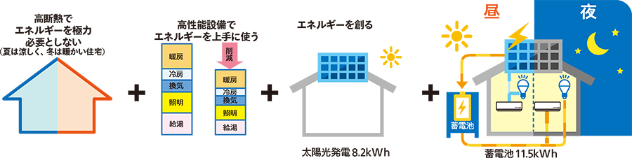 経済産業省の資料等では「エネルギー収支をゼロ以下にする家」