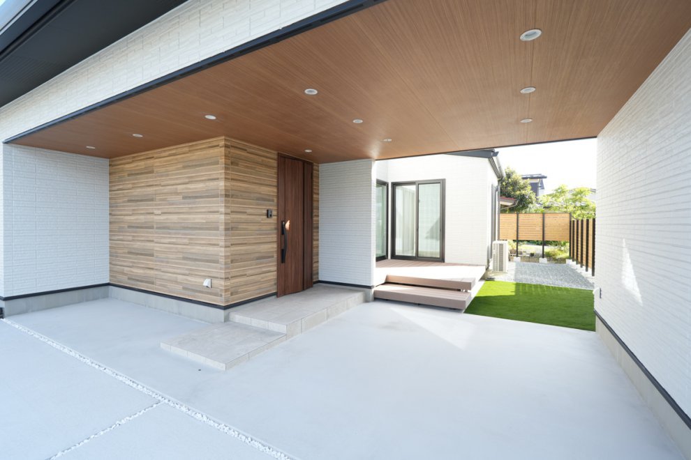 アプローチは重厚感のある雰囲気になるだけでなく、雨に濡れず玄関までアクセスできます。