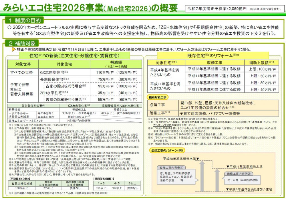 新築補助金「みらいエコ住宅2026」の情報が公開!