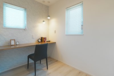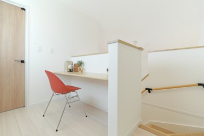 壁面にカウンターデスクを設置すれば、お子様の勉強スペースや、テレワーク用のワークスペースとして活用できます。個室にこもるのと違い、家族の気配を感じながら作業ができるため、安心感と集中力を両立させることができます。
