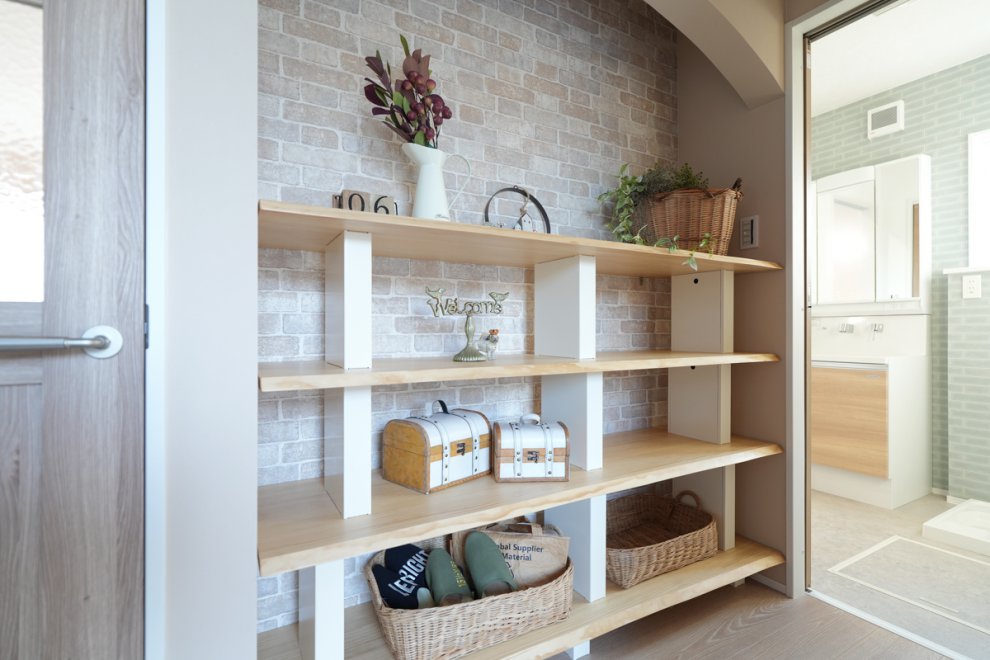 玄関に入るとときめく棚がお出迎え。