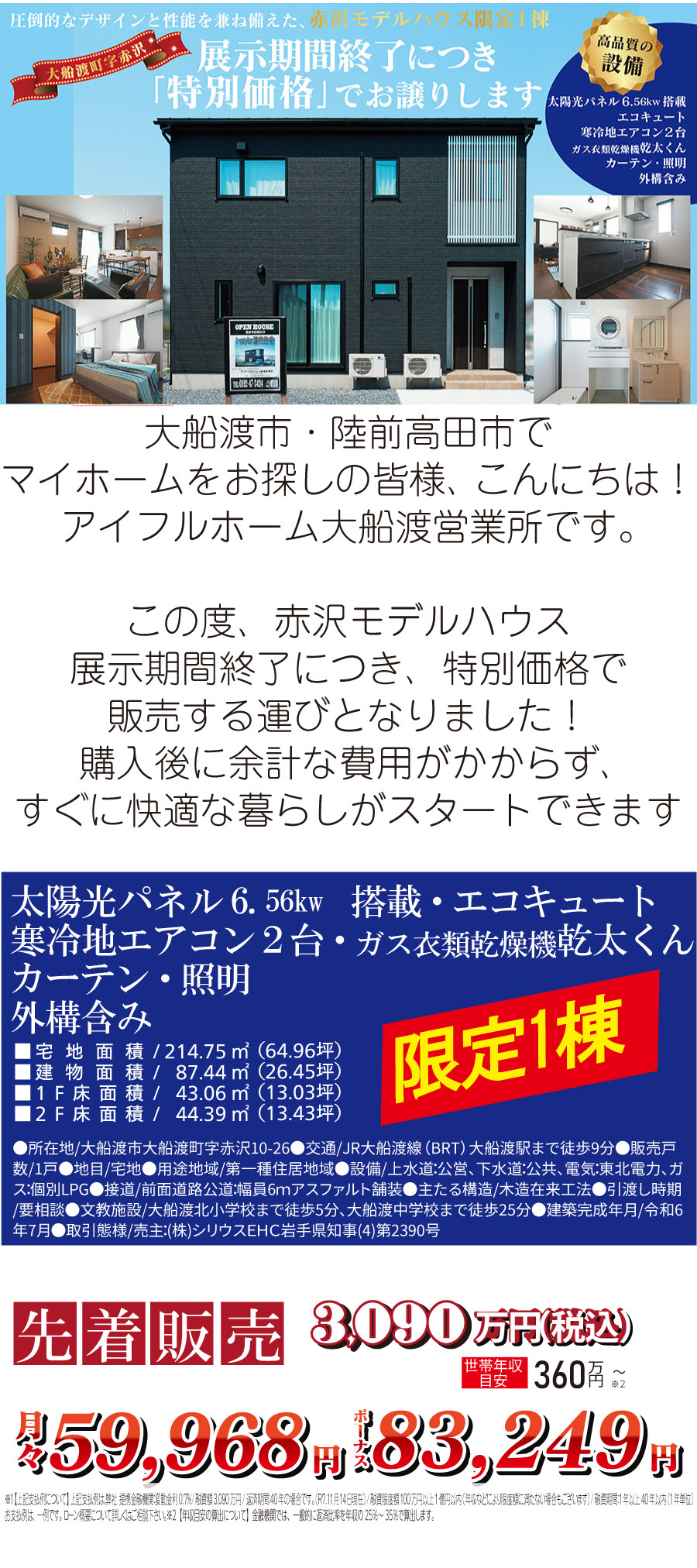 【予約制】赤沢モデルハウス「特別価格」でお譲りします【大船渡営業所】