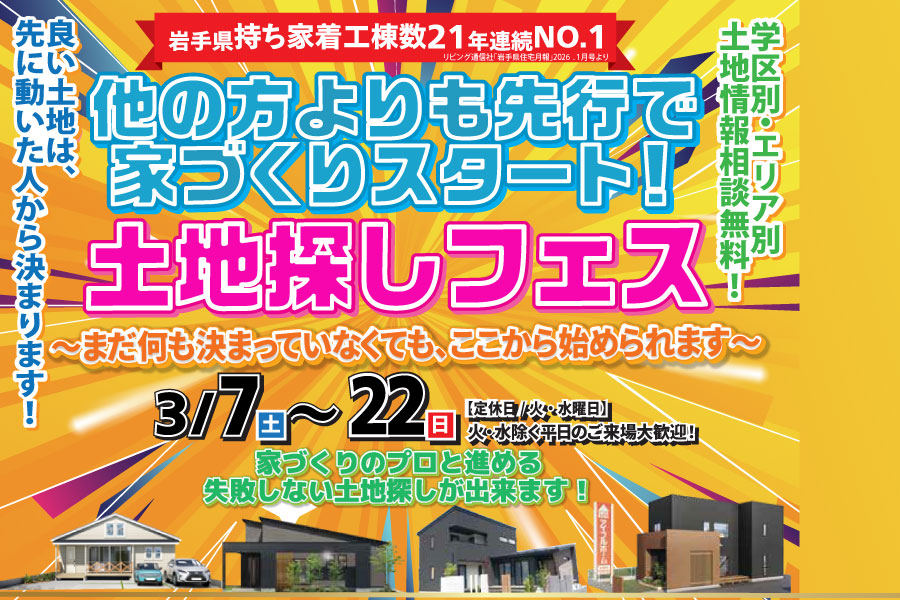 【新築住宅】先行で家づくりスタート!土地探しフェス【大船渡営業所】