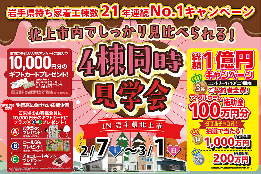 【新築住宅】北鬼柳・しらゆり*しっかり見比べられる全4棟同時見学会【北上中央店】
